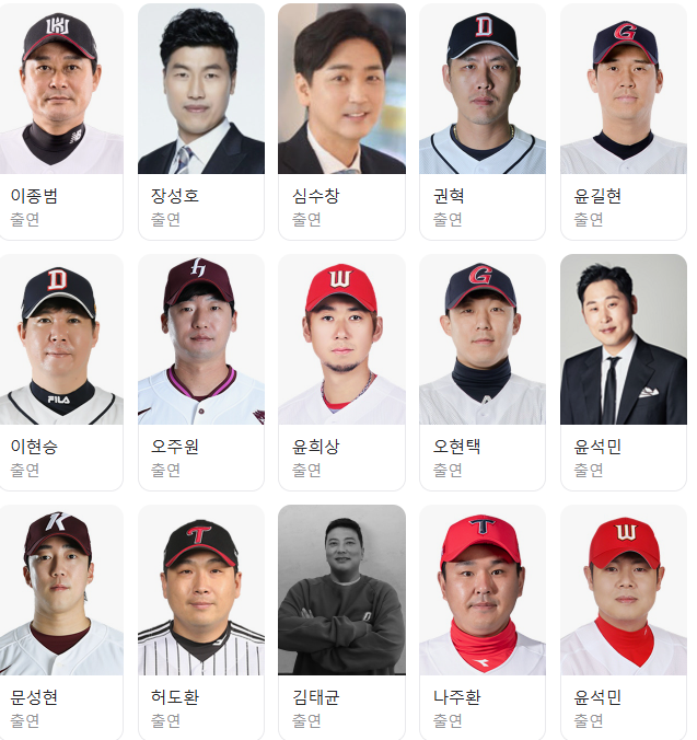 시즌4부터 합류한 이종범 감독은 팀을 이끄는 중심축입니다. 전설적인 선수 출신의 경험이 현장에 생기를 불어넣습니다. 이어 타자진과 투수진, 포수진, 그리고 중계진까지 출연진 구성은 베테랑 중심으로, 각자의 전문성을 살려 팀을 완벽하게 구성하고 있습니다.